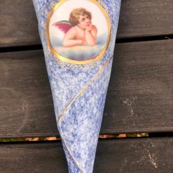 Blå/vit med gulddetaljer , ängel , väggvas gammal