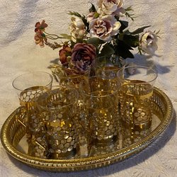 6 irish kaffeglas royal crona - bricka Scania guldpläterad - 4 skedar - shabby