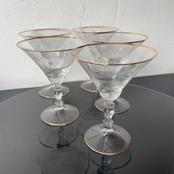 Glasskål och fat med guldkanter