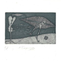 Koldnål grafikk av russisk kunstner