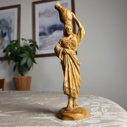 Staty Snidad Kvinna Kärl Trä Hantverk