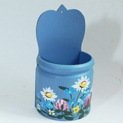 Liten skäppa i trä. Dala hemslöjd, Mora. Blå med handmålade blommor