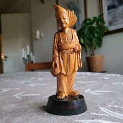 Skulptur Trä Snidad Man Kina Sockel