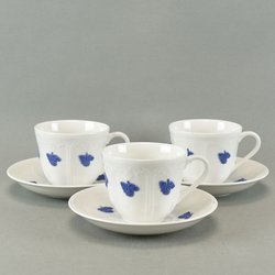 3 Kaffekoppar med fat - Blå Blom - Old Gustavsberg