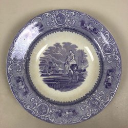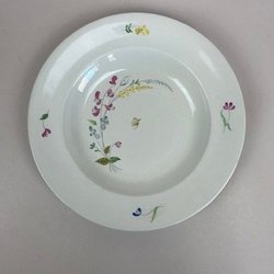 Djup tallrik , 1800-tal, Gustavsberg, lila spets, Carrara