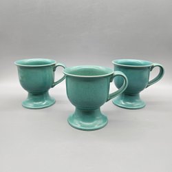 3 st Muggar på fot - Höganäs Keramik Grön Turkos Mugg Kopp Retro Vintage