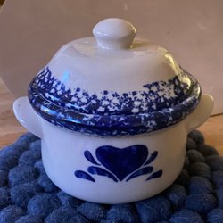 Keramikskål/skål med lock, Corelle ”Blue sponge heart” Corningware