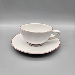 Mugg och fat - Höganäs Keramik- Vit med röd kant Retro Kopp tallrik