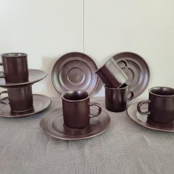Höganäs Härd, två kaffekoppar med fat och assietter, Signe Persson Melin