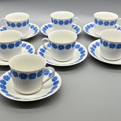 Sju stycken Kaffekoppar med fat - Rörstrand ”Inga”