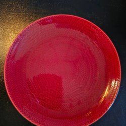 Tallrik blå eld, röd. Hertha Bengtson. Rörstrand.