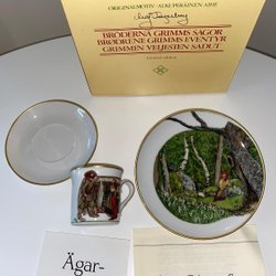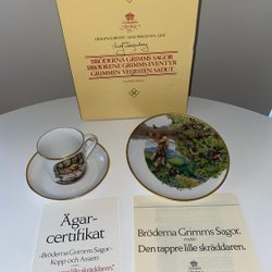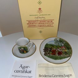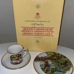Fyrklövern Kopp assiett och tallrik med Grimms sagor med motiv av Maj Fagerberg