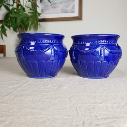 2 Retro Ytterfoder Krukor Steninge Kobolt Blå Glasyr