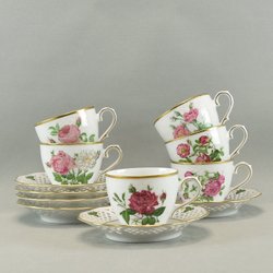6 Kaffekoppar med fat - Klassiska Rosor - Fyrklövern