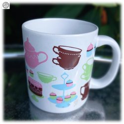 Ikea kult kopp med fikaattiraljer såsom kakfat koppar tårta och kaffekanna