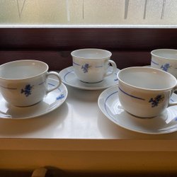 Fyra Mariehult Blåklint kaffekoppar med fat