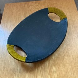 Fat i stengods med lindade handtag, -50tal, ca 34 cmx24 cm