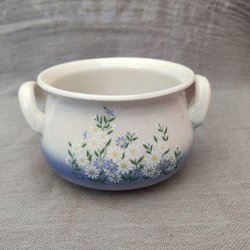 Liten skål bytta med öron i stengods. Blomdekor på.