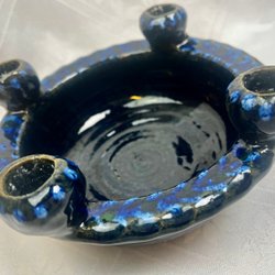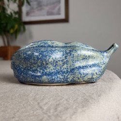 Pumpa Handgjord Skulptur Keramik Blå Kristallglasyr Signerad