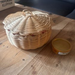 Guldkroken Hjo – handblåst glasskål med korg