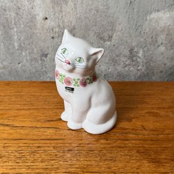 Guldkroken | HJO | Sparbössa i Keramik | Katt | Vit Med Gröna & Lila Blommor