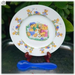 My sweet teddy tallrik med sked i porsling sked plast vintage fint skick