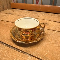 Bavaria Kopp med Fat - Blå och Guld Porslin