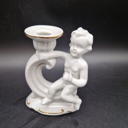 1 ljusstake pojke vit porslin enligt Google: Gräfenthal Ljusstake Kerub Porslin