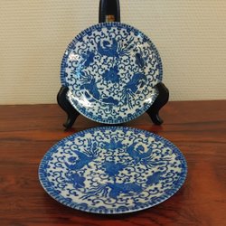 2 blåvita japanska assietter, 1900-tal, diameter ca 15 cm