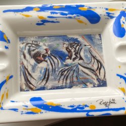 Villeroy & Boch askfat för cigarrer, vita tigrar, Rolf Knie, 1980-tal, ovanlig