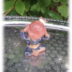 Barnfigurin i keramik sittande mediterande Seto Craft Japansk vintage