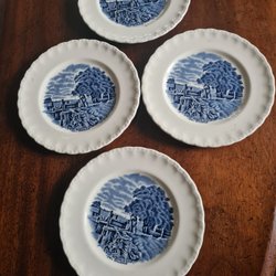 Wedgwood Roma antik Royal Semi Porslin, 4 tallrikar England 1800tal flytande blå