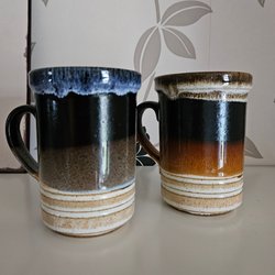 5 st retro muggar Supermugs staffordshire made in England blått och brunt
