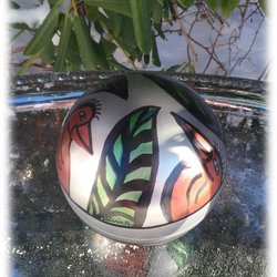 Underbart handmålat fat keramik apelsinplock väggfat handmålat sign Antonio
