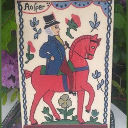 Tavla med karl dalkarl på häst kurir med broderier Aalper Fint skick