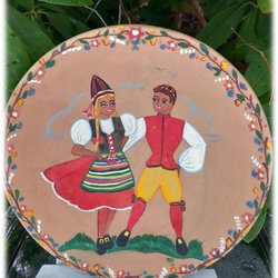 Lerfat keramik med dalpar dans signerat MJ baktill signerad och daterad 1930 MJ