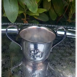 Barn dop kopp i metall med elefant märkt JHS Denmark undertill