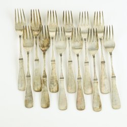 Fördelen med matsilver är att det håller mycket hög kvalitet. Gafflar och knivar i äkta silver håller hur länge som helst. De kan oxidera med tiden, då blir besticken svarta, men detta putsar du enkelt bort genom att lägga aluminium i en kastrull. Lägg sedan i besticken, häll på vatten så att besticken täcks. Koka upp vattnet och lägg i ett par skedar bikarbonat. Efter en kort stund är den svarta beläggningen borta och besticken skiner återigen!
