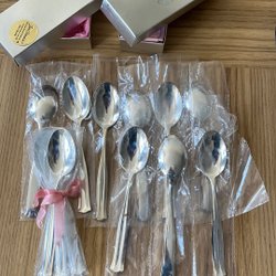 Dopgåva. Barnbestick, sked, nysilver Mema, present, oanvänd