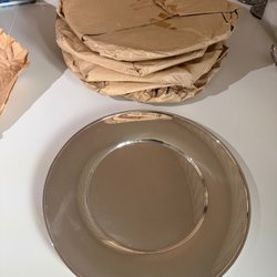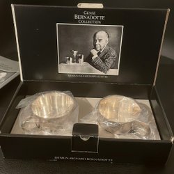 2 st koppar i putsfritt nysilver med glasinsats.Oanvända från äldre guldsmed