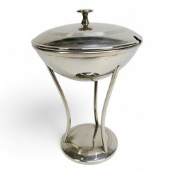 Elegant sockerskål i nysilver med lock på ställning 19 cm – vintage skål