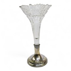 Glasvas med nysilverfot 26 cm slipad dekor – antik blomvas