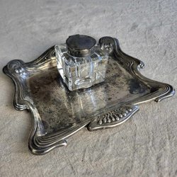 Jugend Bläckställ Bläckhorn Skrivställ Nysilver glas