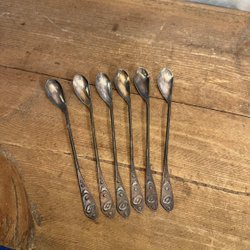 6 st fina vintage grogg skedar i nysilver