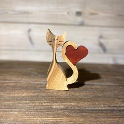 Träskulptur - Katt med hjärta