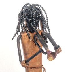Metallfigur av en afrikansk man som spelar flöjt, Koppar och metall, Julpresent