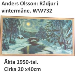 Anders Olsson: Rådjur i vintermåne. 1950t. Liten pappersbonad, c:a 23x43 WW732