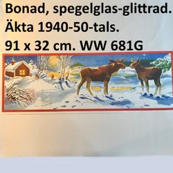 Älgar, glas-GLITTRAD. Äkta 1940-tal Stor pappersbonad. 91x32 cm. WW681G
