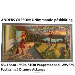 Anders Olsson: Påskkäring drömmer.1950t.Liten pappersbonad WW631 Påskbonad.21x42