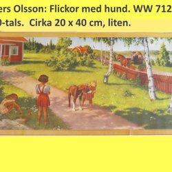 Anders Olsson: Flickor med hund. 1950tal. Liten pappersbonad. 21x39cm WW712